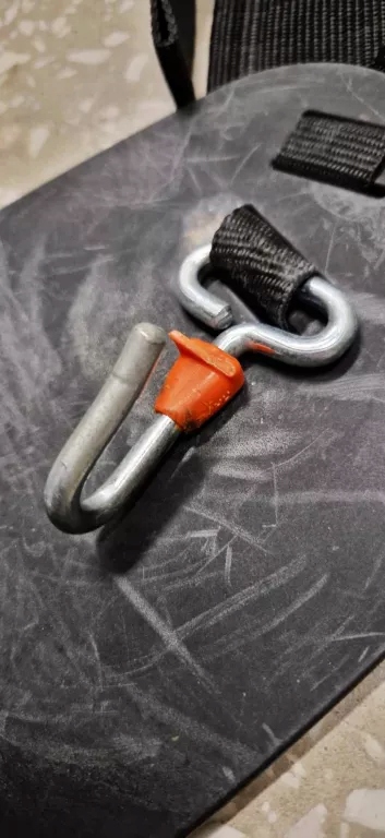 Stan wizualny oceniamy na DOBRY, widoczne otarcia i zabrudzenia. Uszkodzony kawałek plastiku przy haczyku.