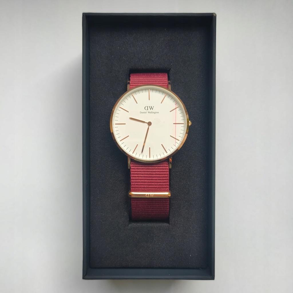 Daniel Wellington Classic Roselyn DW00100267 jest stylowym zegarkiem przeznaczonym dla mężczyzn. Urządzenie utrzymano w minimalistycznym stylu, który świetnie komponuje się z każdą stylizację. Produkt składa się ze stalowej koperty, bordowego paska z materiału tekstylnego NATO oraz białej tarczy pokrytej szkiełkiem mineralnym.