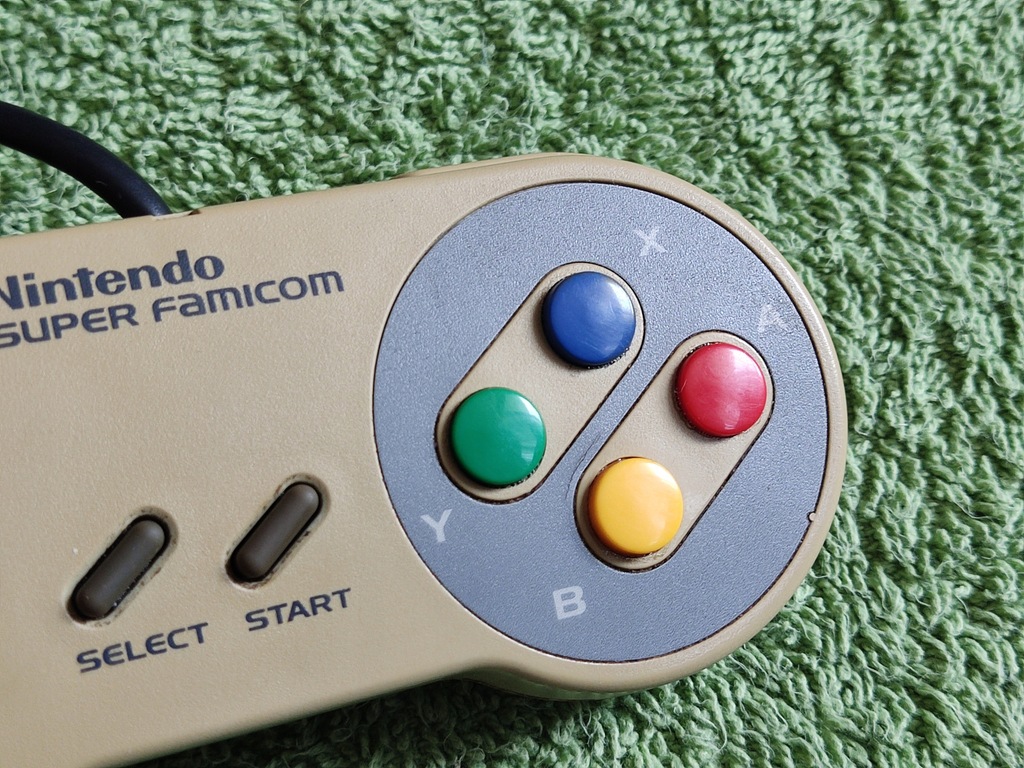 Oryginalny kontroler do konsoli Super Famicom/Super Nintendo.