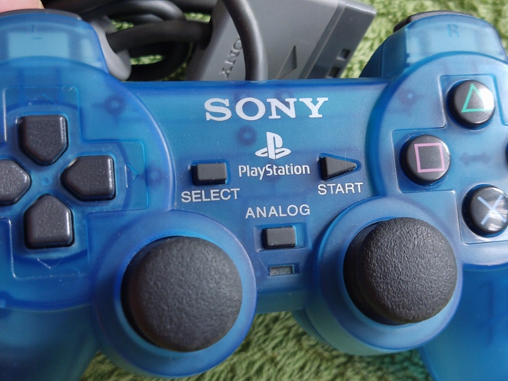 Oryginalny kontroler do konsoli PlayStation. Pad w kolorze Clear Blue.