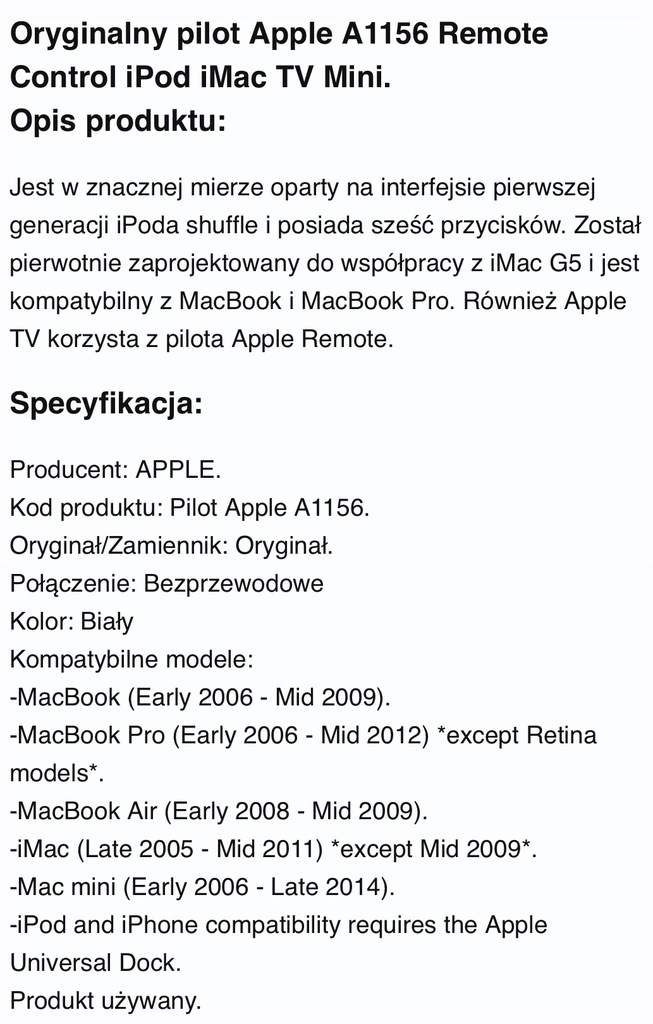 - Oryginalny Pilot Apple Remote A1156 Gwarancja