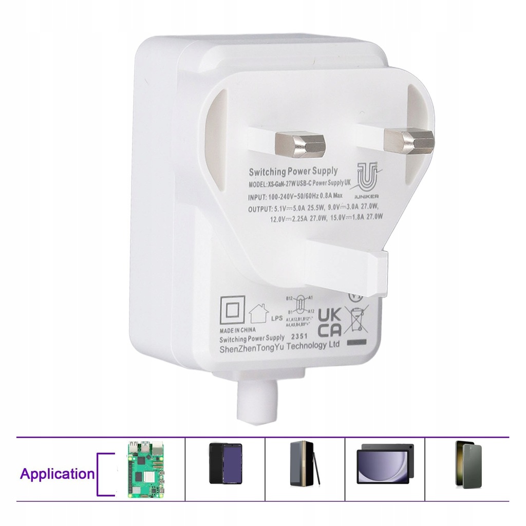 dla zasilacza Pi 5 5,1 V 5 A 27 W PD Interfejs USB C Technologia GaN Zasilacz AC100-240 V