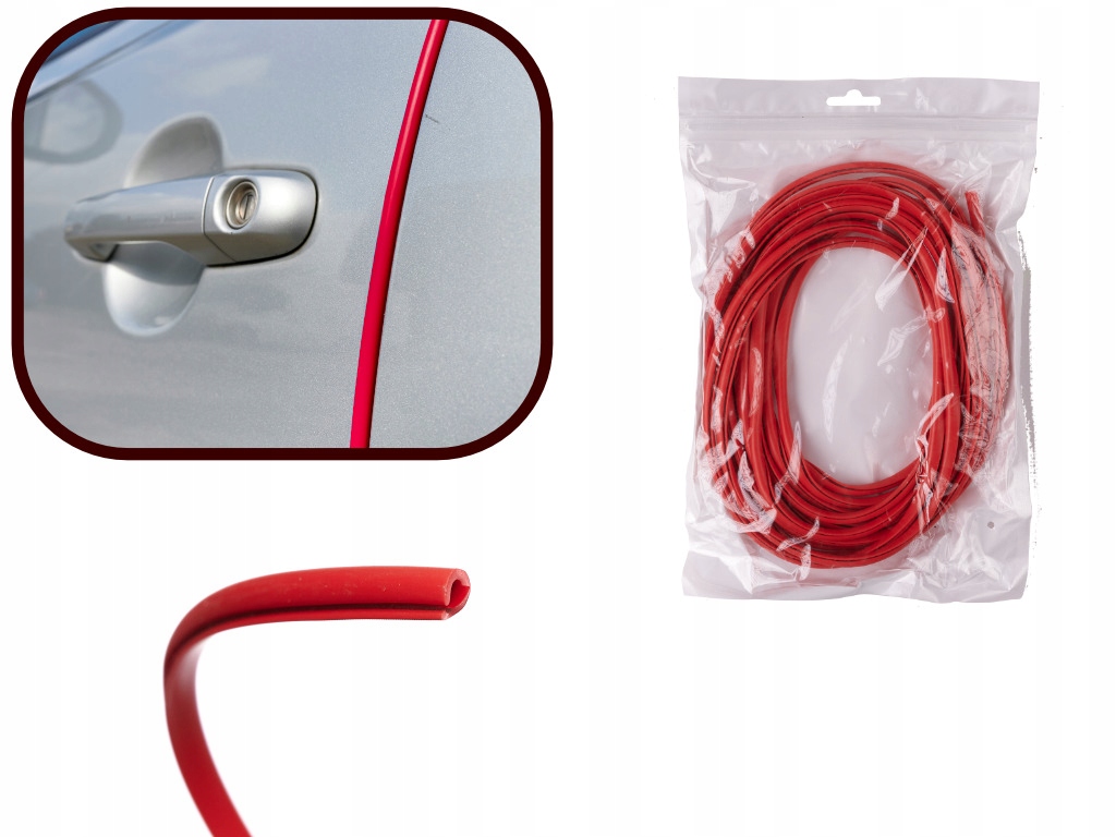 Osłona krawędzi drzwi samochodu przeznaczona do ochrony przed zadrapaniami oraz uszkodzeniami lakieru. Listwy idealnie nadają się do zabezpieczenia drzwi przed uszkodzeniami parkingowymi. Długość taśmy: 5m. Kolory: czerwony.