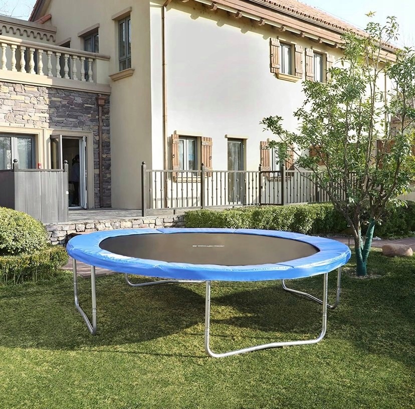 - DOBRZE WYŚCIÓŁKA: pianka EPE wewnątrz pokrowca zapewnia doskonałą ochronę w przypadku upadku. Osłona ramy jest teraz jeszcze szersza i lepiej wyściełana, dzięki czemu niezawodnie zapobiega kontaktowi ze sprężynami trampoliny