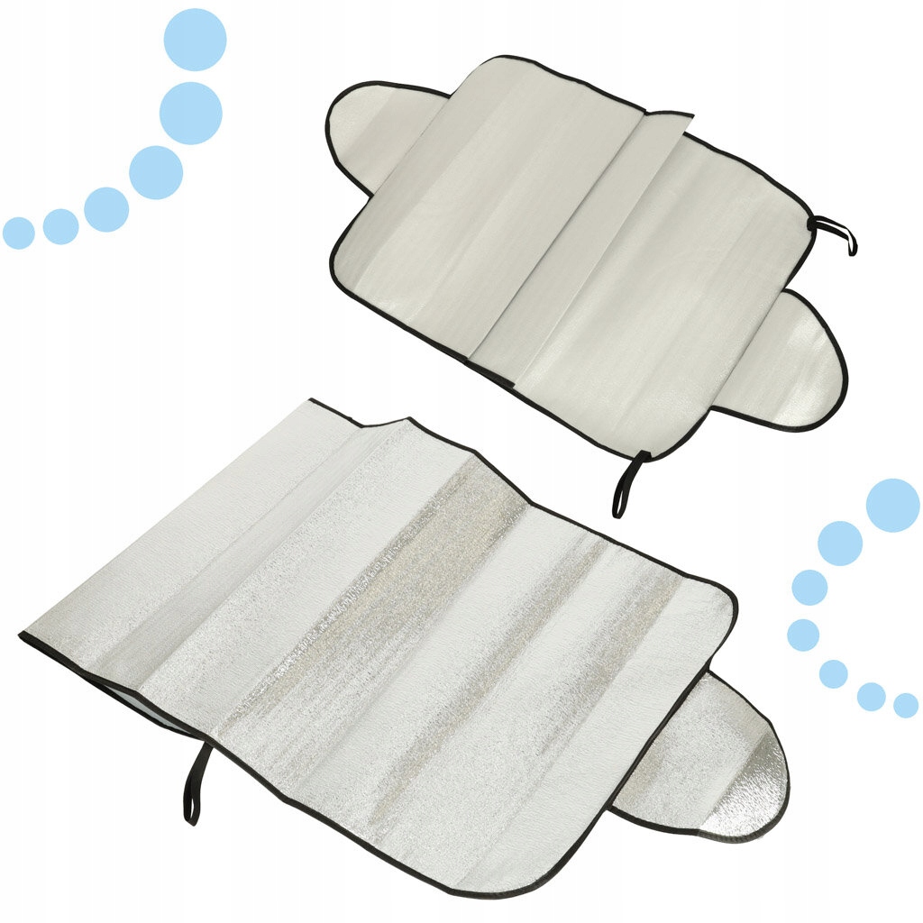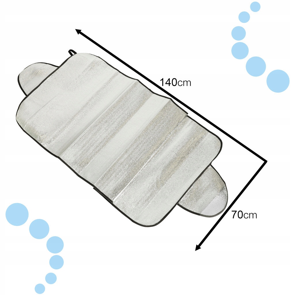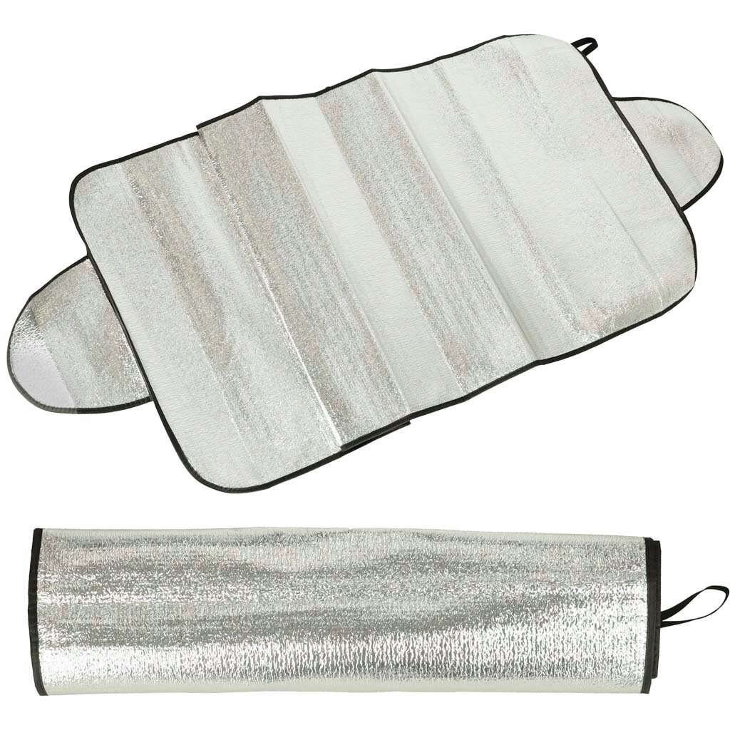 Praktyczna mata ochronna na szybę. Niezastąpiony gadżet każdego kierowcy. Latem będzie zapobiegać przed nagrzewaniem się auta, zimą zabezpieczy szybę przed mrozem i śniegiem. Materiał: poliester. Kolor: srebrny. Wymiar kurtyny: 140cm x70cm.