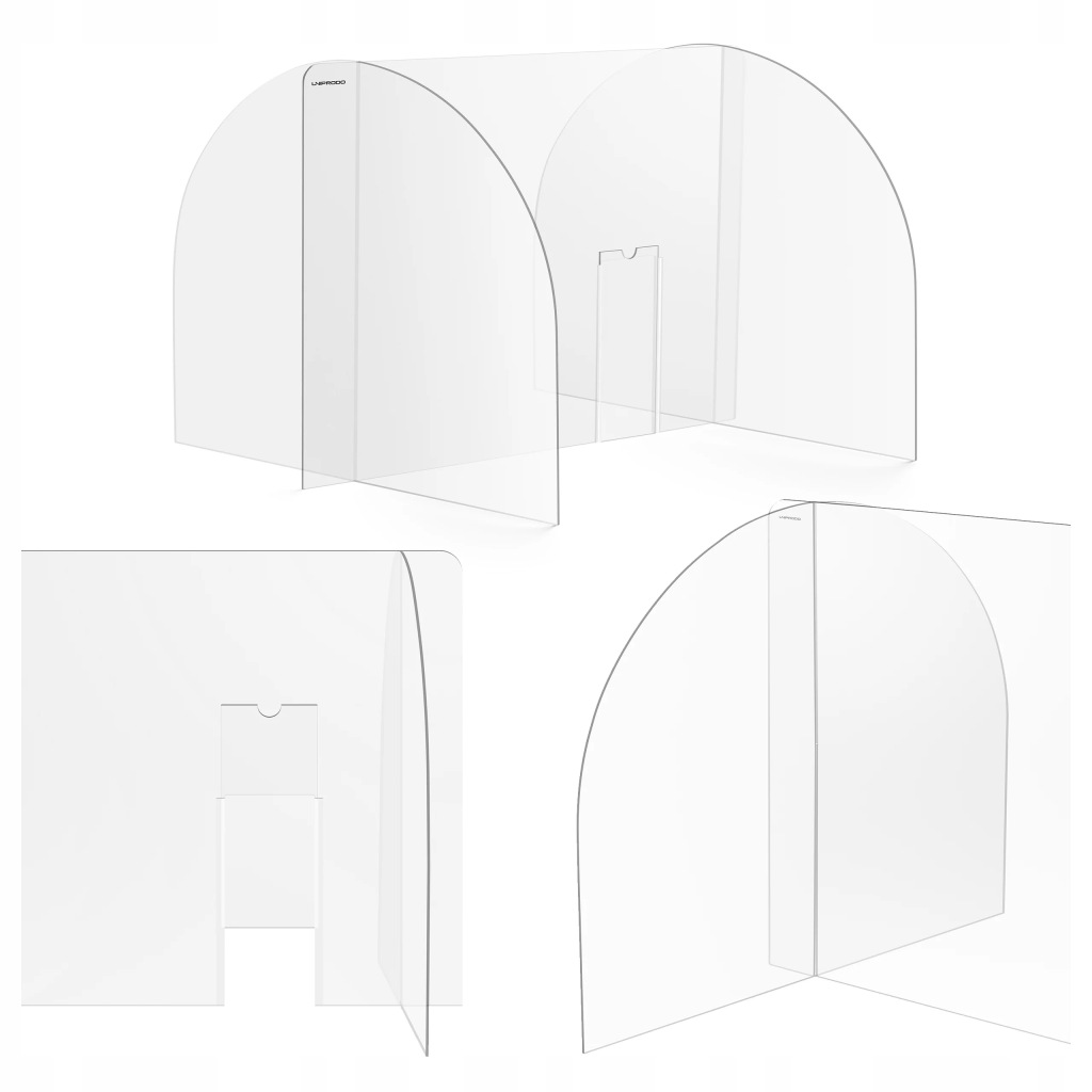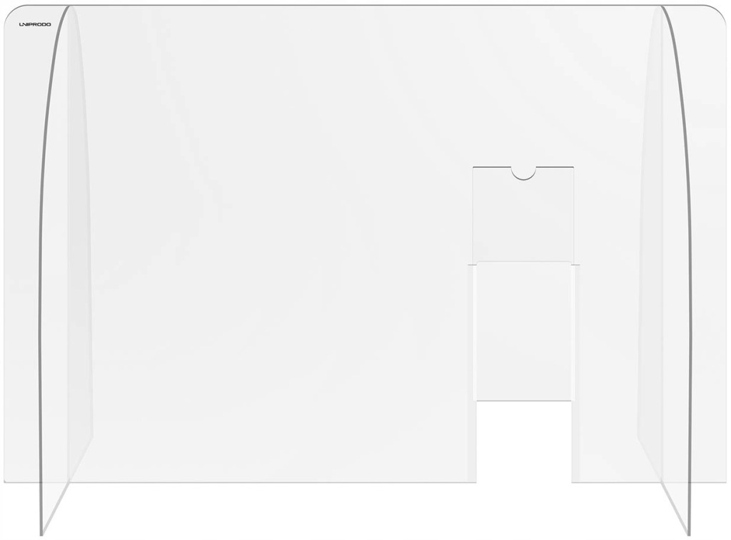 Osłona z plexi marki Uniprodo stanowi praktyczny element wyposażenia miejsc bezpośredniej obsługi klientów. Sprawdzi się w biurach, urzędach, punktach gastronomicznych, handlowych, kosmetycznych itp. Model UNI-PPG04 umożliwia realizację zasad dystansu społecznego przy zachowaniu pełnej komunikacji.