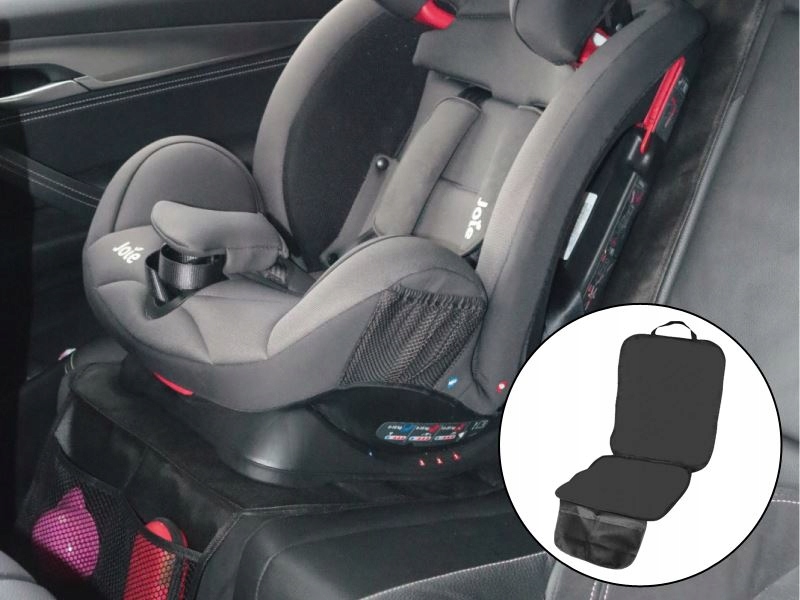 Osłona pod fotelik dla dziecka z organizerem w kolorze czarnym