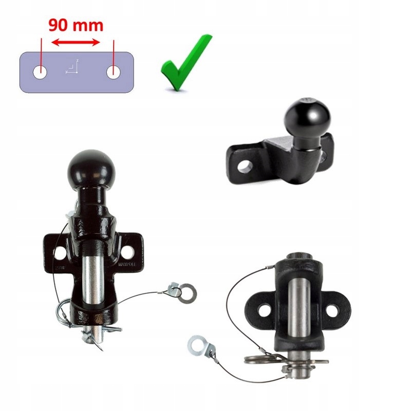 Płyta pasuje do każdego haka holowniczego z rozstawem otworów do przykręcenia kuli 90 mm i każdego pojazdu z przygotowaniem pod montaż takiej kuli.
