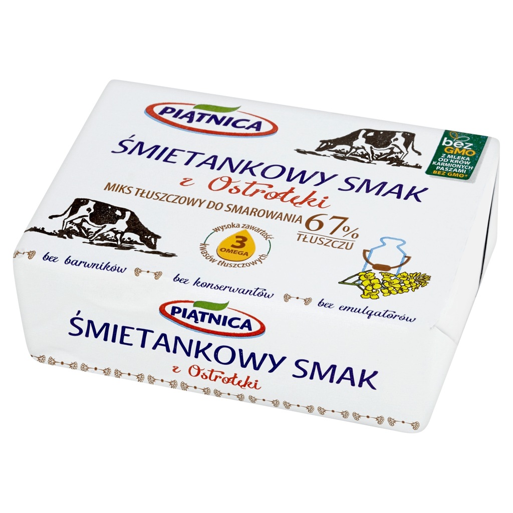 Śmietankowy Smak z Ostrołęki charakteryzuje doskonale dobrana proporcja tłuszczu mlecznego (pozyskiwanego z pasteryzowanej śmietanki) i wysokiej jakości olejów roślinnych. Mix z Ostrołęki zachowuje walory masła – wyrazisty, śmietankowo-maślany smak i zapach. Dodanie oleju roślinnego sprawia, że po wyjęciu z lodówki mix z łatwością rozsmarowuje się na pieczywie. Wyprodukowany z mleka od krów karmionych paszami bez genetycznie zmodyfikowanych organizmów.