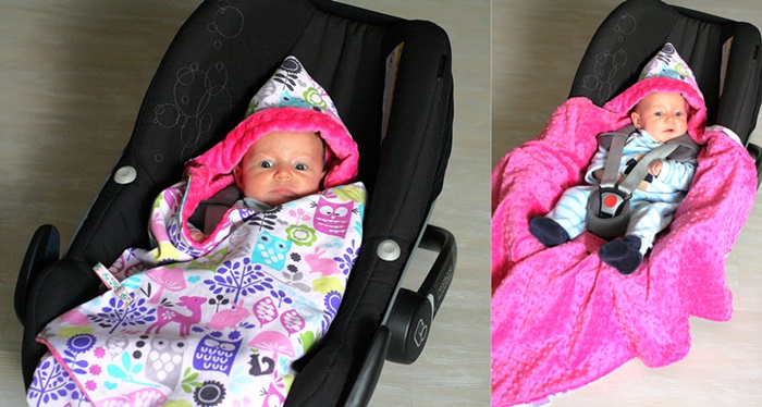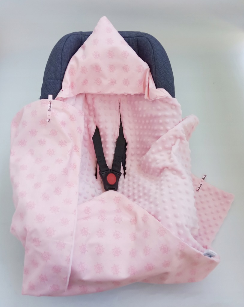 Kocyk dobrze otula dziecko po samą szyję i pozostaje na swoim miejscu dzięki wycięciom na szelki, dodatkowo posiada kapturek na główkę niemowlaka zapewniający komfort i ciepło. Łatwy w użyciu, bez problemu zakryjemy, odkryjemy i wyjmiemy dziecko nie przeszkadzając mu w śnie. Kocyk w kształcie rombu.