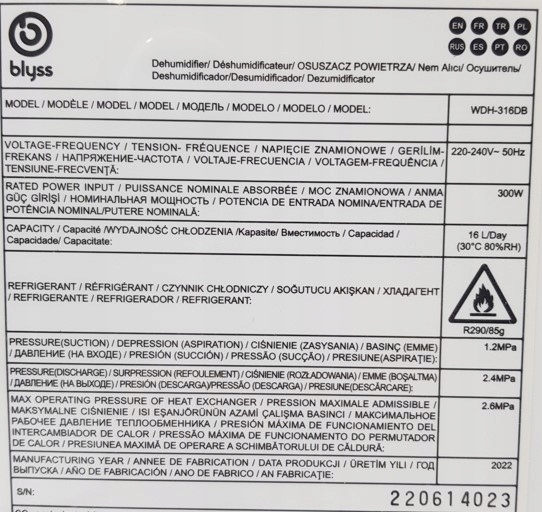 Osuszacz powietrza Blyss 16L WDH-316DB