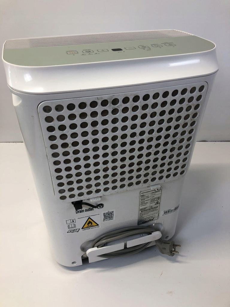 Przedmiot posiada certyfikat CE.Instrukcja w jezyku Angielskim.Urządzenie nie sprawne,złe wskazanie wilgotności,nie pokazuje właściwej wartości.Uszkodzony czujnik poziomu napełnienia zbiornika wody,nie reaguje na poziom wody (wskazuje pusty przy przepełnionym).