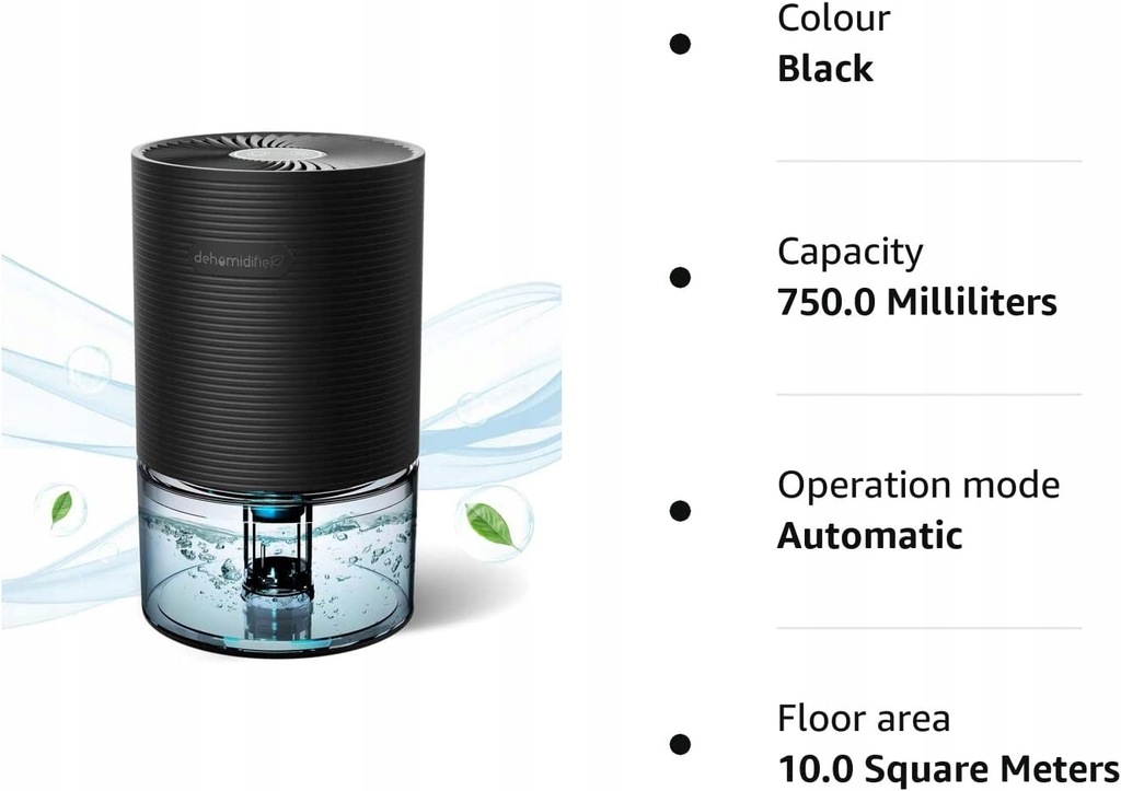 - Ten osuszacz wyłączy się automatycznie (gdy woda osiągnie maksymalną bezpieczną pojemność), aby zabezpieczyć się przed ryzykiem przelania.