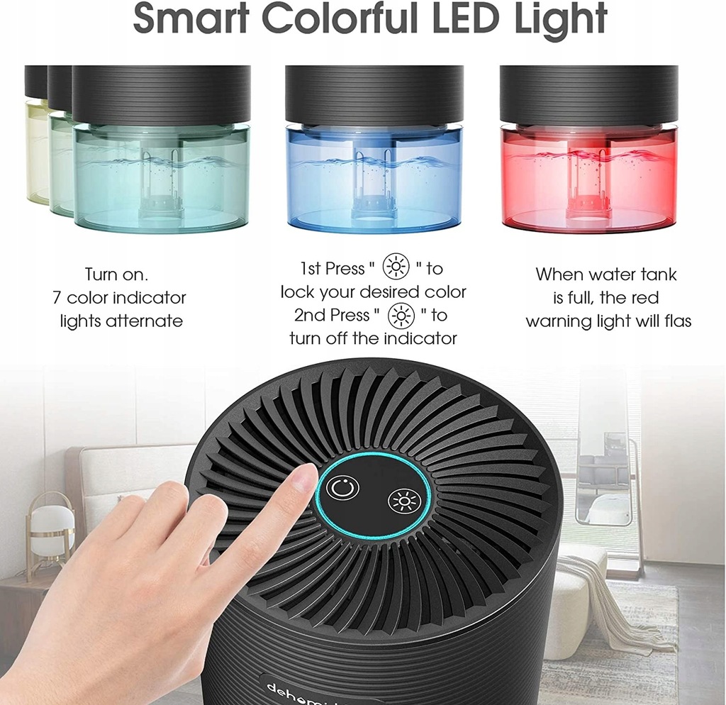 【Wielokolorowe diody LED】 Ten osuszacz jest wyposażony w sterowane kolorowe diody LED, możesz sterować światłem LED w jednym stałym kolorze lub stale zmieniających się kolorach lub wyłączać je osobno. Kolorowe światło LED nie służy do oświetlenia, służy do tworzenia atmosfery.