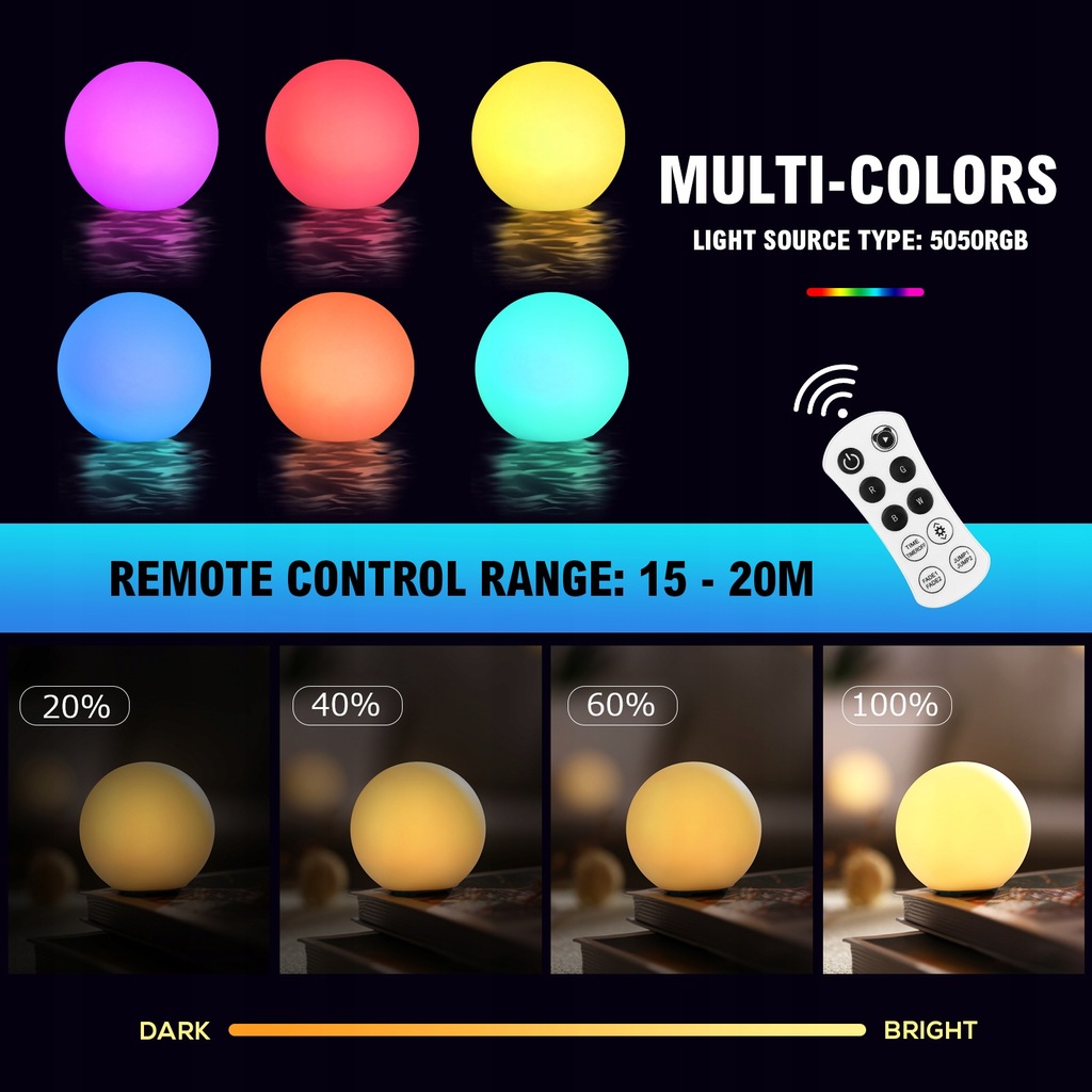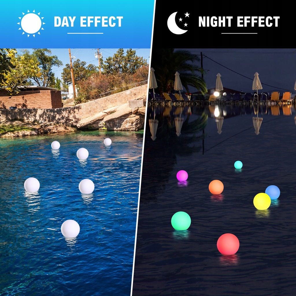 ✅ Zaprojektowane w proste kształty kulek, światła są lekkie i kompaktowe, mogą unosić się na powierzchni wody, wygodne do przenoszenia lub przechowywania, gdy nie są używane.