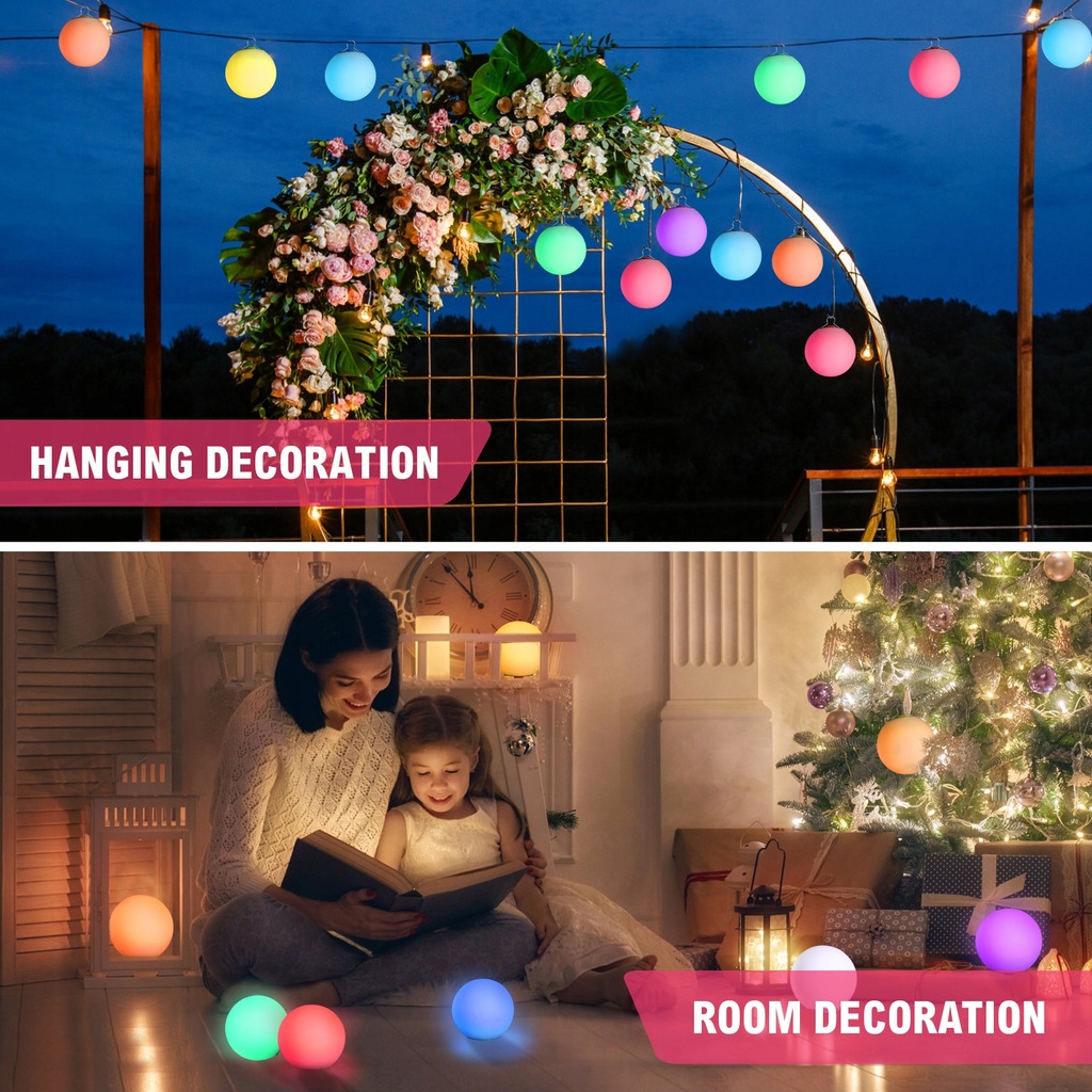 ✅Nasze kule świetlne nadają się nie tylko do pływających dekoracji świetlnych, ale można je również zawiesić w celach dekoracyjnych. Haczyk znajdujący się na dole lampy można łatwo wyciągnąć w celu użycia.