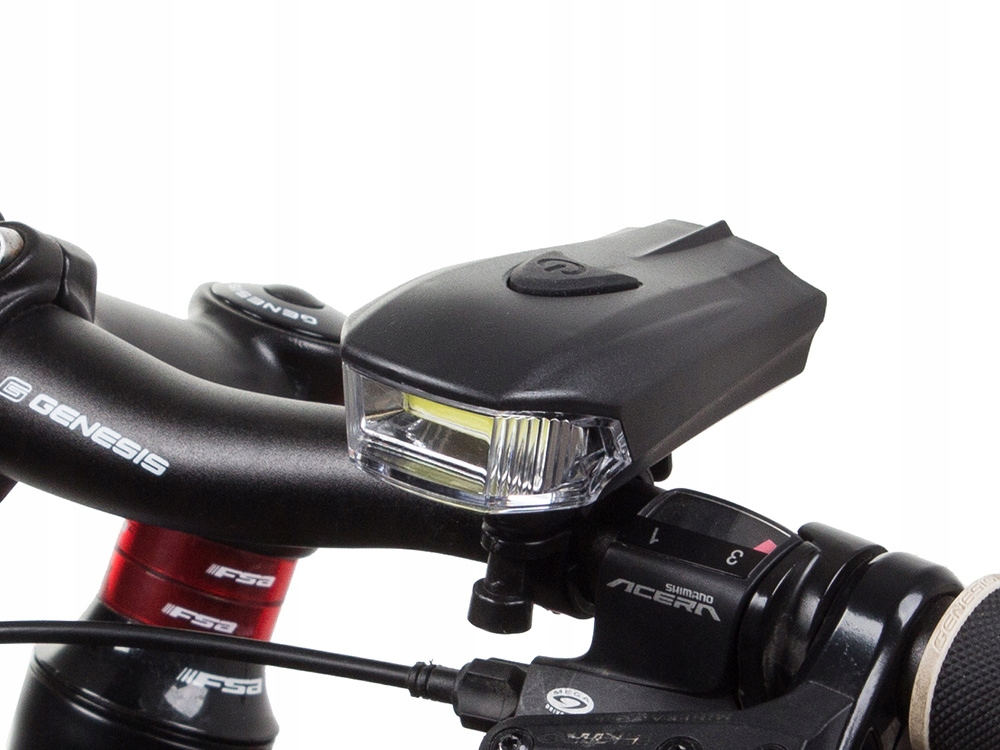 Lampa przednia z diodami nowej generacji COB, emituje ostre wyraźne światło, dzięki czemu rowerzysta jest widoczny z dużej odległości co zapewnia większe bezpieczeństwo na drodze.