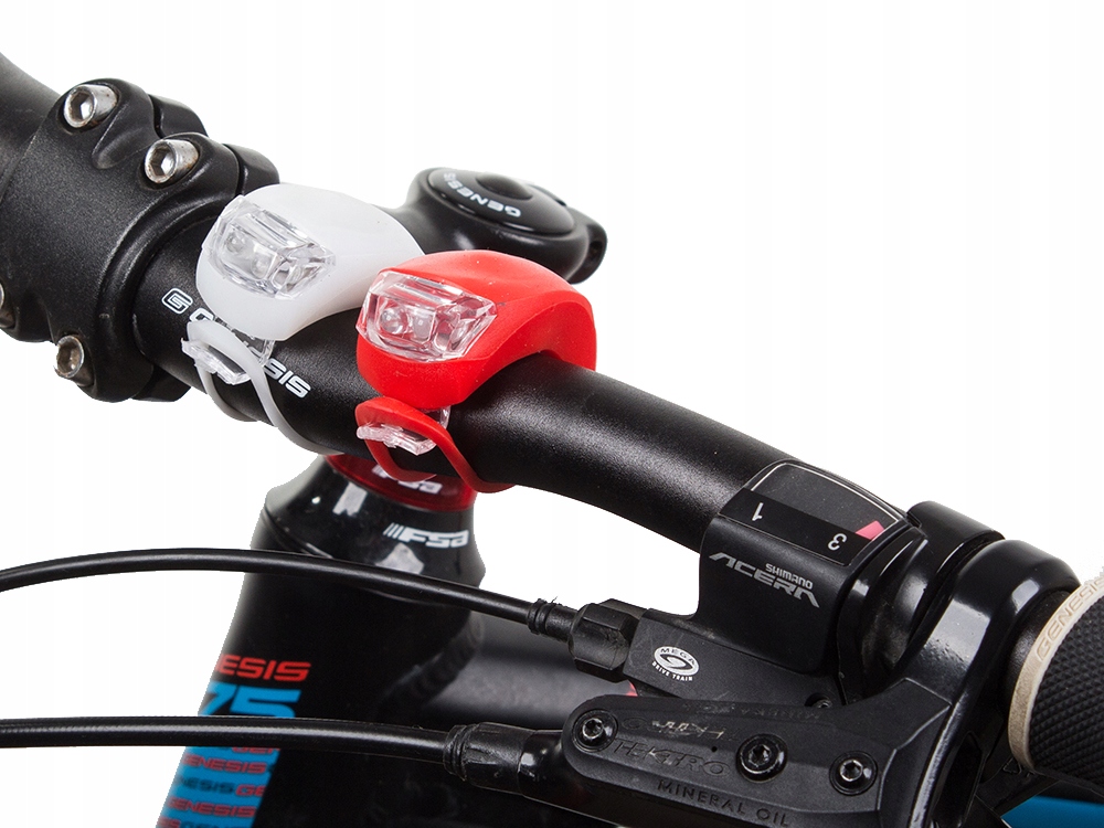 OŚWIETLENIE ROWEROWE SILIKONOWE 2 LED KOMPLET PRZÓD I TYŁ BIAŁE CZERWONE
