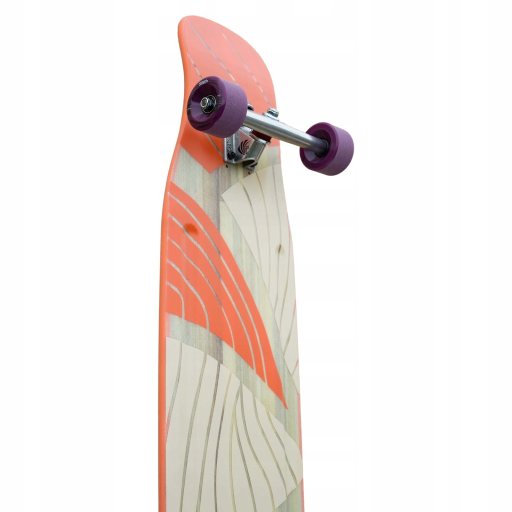 Lekki rdzeń z jesionu i topolli, laminowany wertykalnie dla bezkonkurencyjnej wytrzymałości, ten deck to bilet na niekończące się longboardowe przygody. Wzmocniony włóknem szklanym i Krawędziami z Poliuretanu wokół całej krawędzi deski. Ten deck jest nie tylko niezwykle lekki, ale też wyjątkowo wytrzymały Głębokie wheel wellsy pozwalają zamontować większe koła a mocowanie top-mount zapewnia stabilną jazdę i responsywność deski, podczas gdy wodoodporność sprawia że nie straszne nawet najgorsze warunki pogodowe.