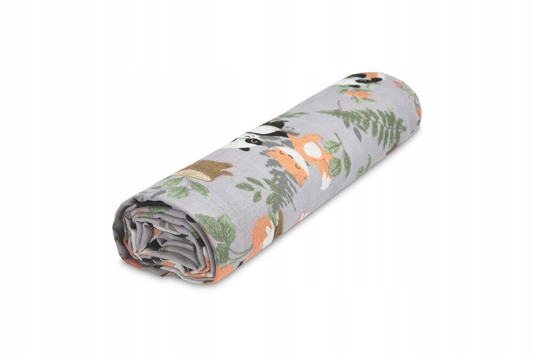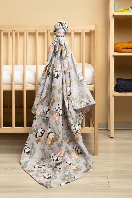 ✨ OTULACZ MUŚLINOWY PANDA I LIS 120X120 CM ✨
