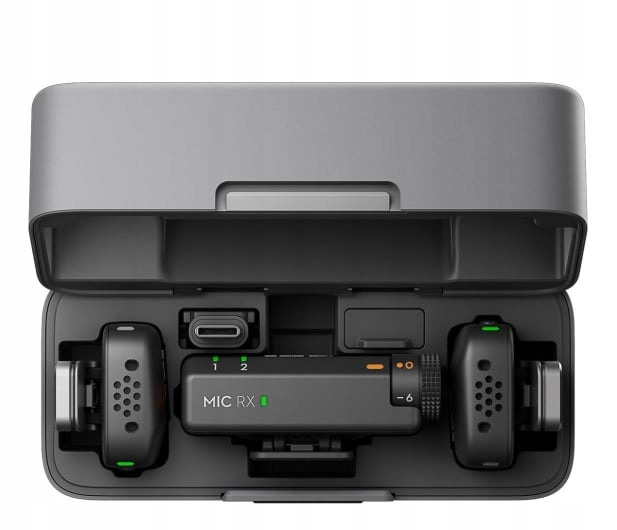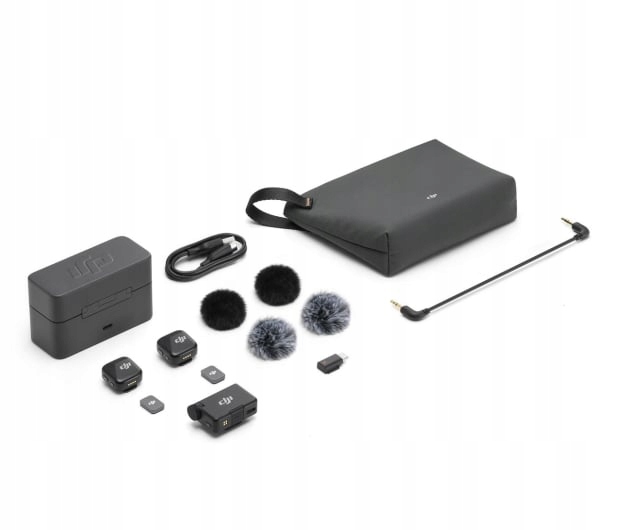 - Dołączone akcesoria: 2 x osłona przeciwwietrzna; Zapinana na zamek torba transportowa; Torba do przechowywania; Kabel ładujący USB; Magnetyczny klips; Nadajnik DJI Mic Mini; Odbiornik DJI Mic Mini; Kabel audio do kamery (3,5 mm TRS); Adapter do telefonu (USB-C) x 1