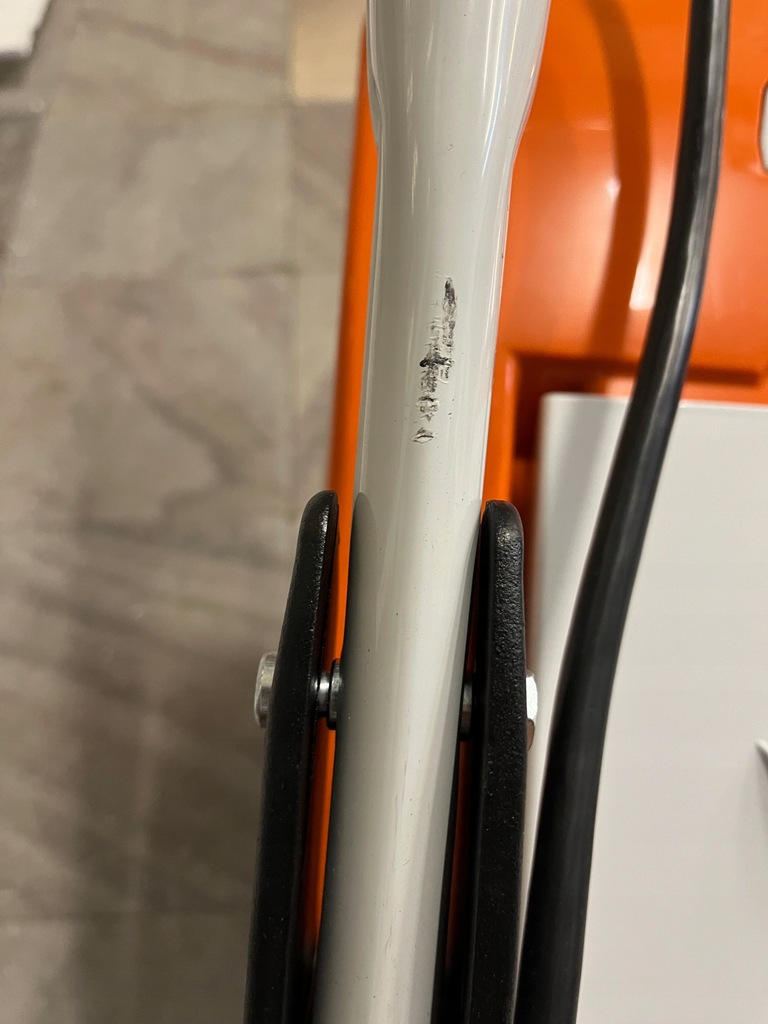 Kosiarka posiada zadrapanie uchwytu widoczne na zdjęciu.