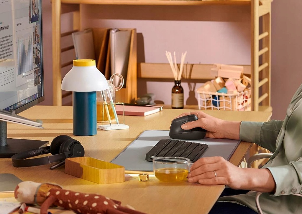 Organiczna sylwetka myszy Lift pasuje jak ulał do małych i średnich dłoni została specjalnie zaprojektowana i wyrzeźbiona przez zespół ekspertów firmy Logitech w dziedzinie ergonomii i wzornictwa.