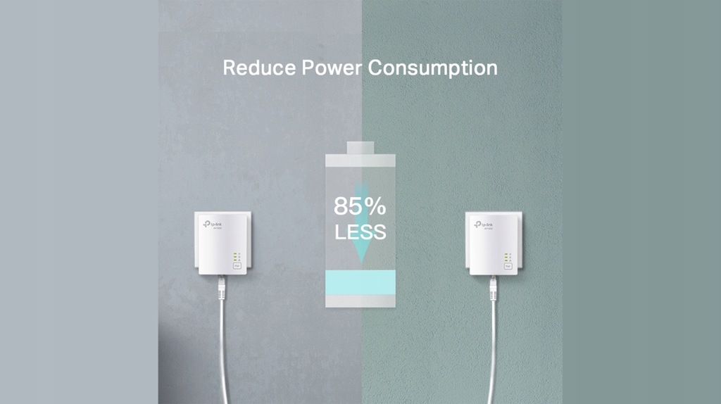 Bardzo praktyczna konstrukcja zestawu TL-PA7017 KIT i zaawansowana funkcja redukcji poboru energii elektrycznej, dzięki której urządzenie automatycznie przechodzi z trybu "Pracy standardowej" do trybu "Oszczędzania energii" sprawiają, że zużycie energii elektrycznej spada nawet o 85%**.