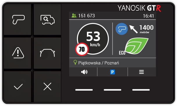 Yanosik GTr to nowe, kompaktowe, urządzenie w rodzinie Yanosik. Wyposażone w dotykowy ekran pozwala na intuicyjną i płynną obsługę. Możesz je zamontować w swoim samochodzie i być na bieżąco ze wszystkimi zdarzeniami z trasy.