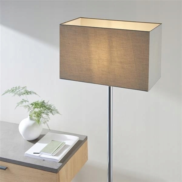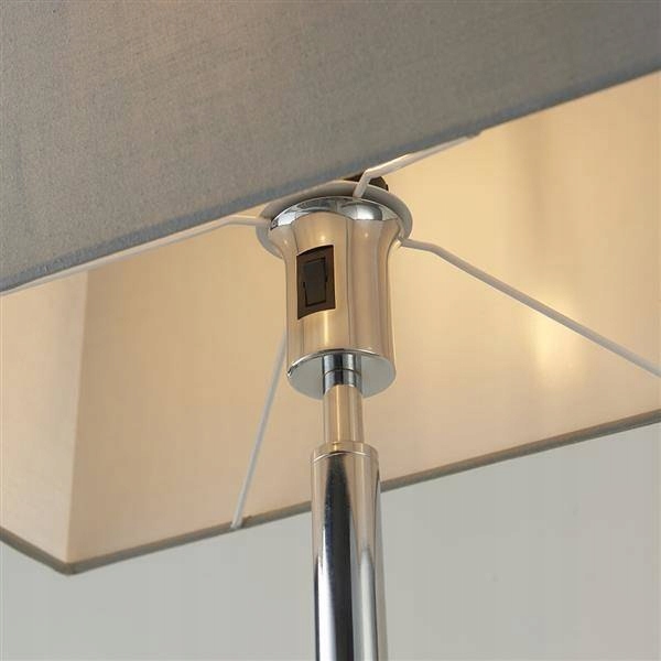 Lampa podłogowa Owen to ponadczasowy, nowoczesny projekt o czystej linii, wyposażony w łatwo dostępny włącznik/wyłącznik. Idealny dodatek do sypialni lub salonu w stylu butikowym, wykończony polerowanym chromem i wyposażony w prostokątny klosz z tkaniny w kolorze chłodnej szarości.