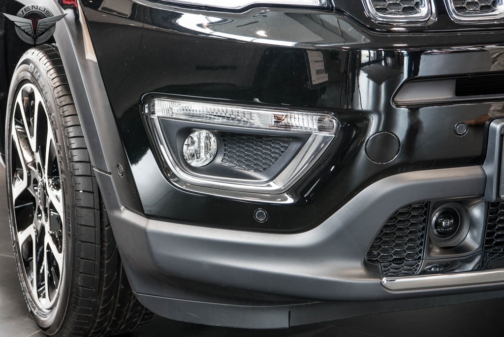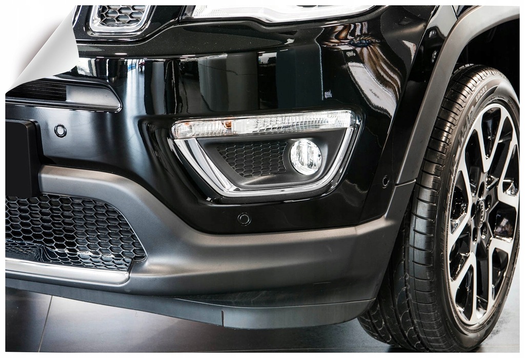 Stylizacyjne listwy podkreślają kształt ramki halogenów. Zestawienie lustrzanego połysku chromowanej powierzchni z dynamiczną, ostrą linią nakładek sprawia, że światła przeciwmgielne zyskują stylową ramę, doskonale pasującą do charaktrystycznego, sportowego stylu Jeep'a Compass'a. Listwy znakomicie komponują się z innymi elementami wykończenia Jeep'a, dzięki czemu ich zastosowanie pozwala uzyskać spójną, wyróżniającą samochód stylizację.