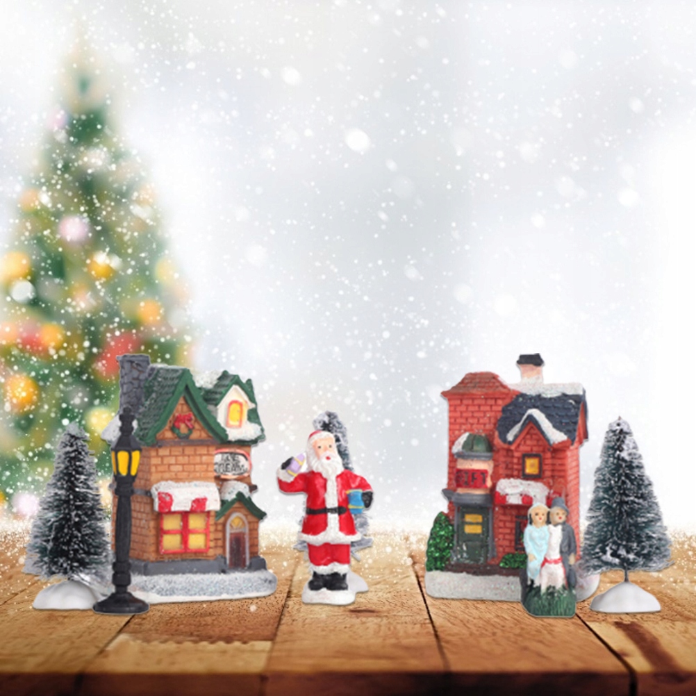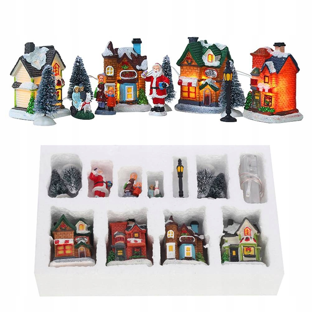 Zestaw wiosek bożonarodzeniowych Żywica Scena bożonarodzeniowa Wieś oświetlone diodami LED Miniaturowe domy Miasto Wieś bożonarodzeniowa Domy Prezent