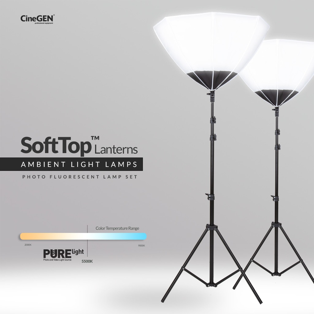 Zestaw lamp studyjnych SoftTop™ Lanterns to doskonały sposób na doświetlenie planu. SoftTop™ Lanterns emitują miękkie, naturalne światło rozpraszając je równomiernie we wszystkich kierunkach. Pomysł na lampy pochodzi wprost z planów filmowych, gdzie powszechnie stosuje się softboksy kuliste. Stosowane są do wypełnienia cieni w tle, poprawienia kolorystyki, plastyki i dynamiki tonalnej obrazu. Doskonałe do filmowania we wnętrzach jako światło "wypełniające" o łagodnym natężeniu. Podwójny zestaw umożliwia stworzenie bardziej naturalnego, "filmowego" oświetlenia planu. Kompletny zestaw, gotowy do pracy po rozłożeniu.