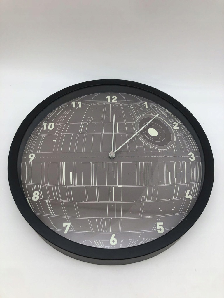 DEKORACJE GWIEZDNYCH WOJN: Ten zegar ścienny o średnicy 30 cm (11,8 cala) przedstawia Gwiazdę Śmierci, najbardziej przerażającą broń w galaktyce. Idealna dekoracja ścienna dla fanów Dartha Vadera, Imperium i sagi Skywalker.