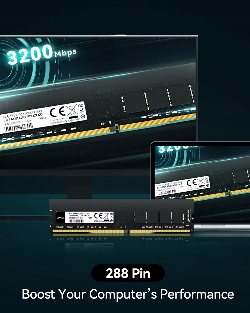 The Lexar DDR4-3200 UDIMM Desktop Memory is your key to awakening your PC with an enhanced performance upgrade, resulting in faster startups, improved responsiveness, and quicker application load times. Its straightforward installation process ensures that you'll be up and running in no time, enabling seamless multitasking.