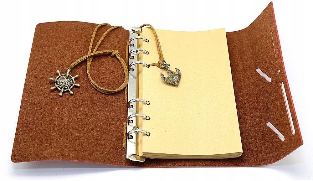 ✅Elegancko wykonany dziennik, wiązany rzemykiem z przywieszkami w marynarskim stylu.