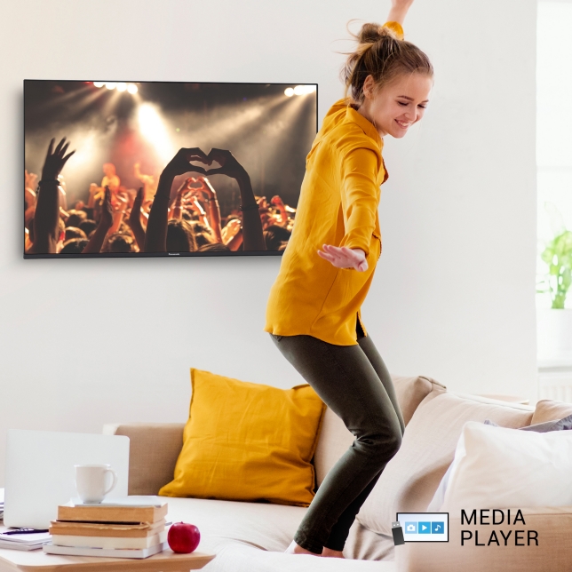 Dzięki funkcji USB Media Player to Ty decydujesz, co jest odtwarzane w telewizorze. Po prostu podłącz dysk USB do gniazda, aby uzyskać dostęp do zapisanych na nim treści osobistych: gier, muzyki, filmów lub zdjęć.