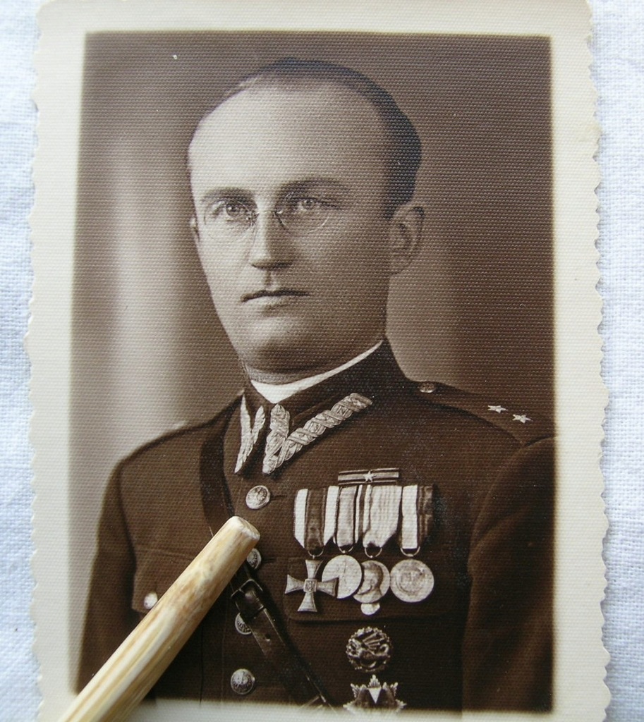 Przedmiotem licytacji jest ciekawa przedwojenna fotografia przedstawiająca Oficera - Porucznika Wojsk Pancernych. Ładnie widoczna Wczesna Odznaka Wojsk Pancernych, Niżej na kieszeni munduru odznaka 19-tego Pułku Ułanów Wołyńskich. Wśród odznaczeń Krzyż Walecznych. Na odwrocie pieczątka zakładu foto "Juerss" z Nowego Dworu Mazoeieckiego. Bardzo wyraźna. Format: - 83 mm. X - 60 mm.