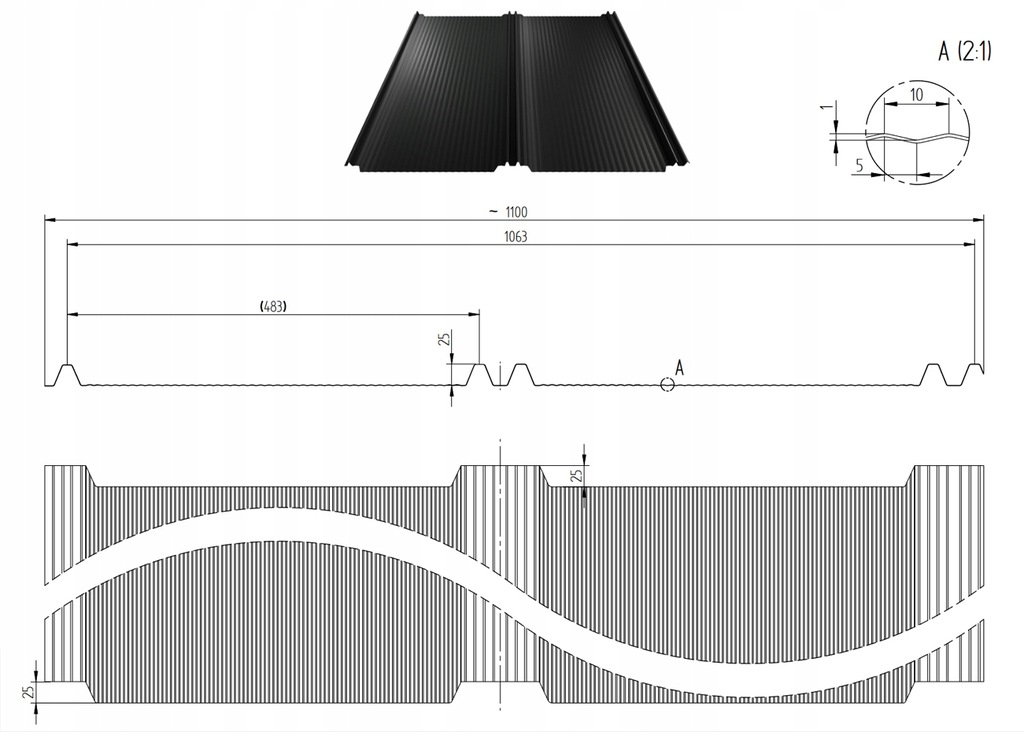 - Szerokość krycia rzeczywista: 1063 mm