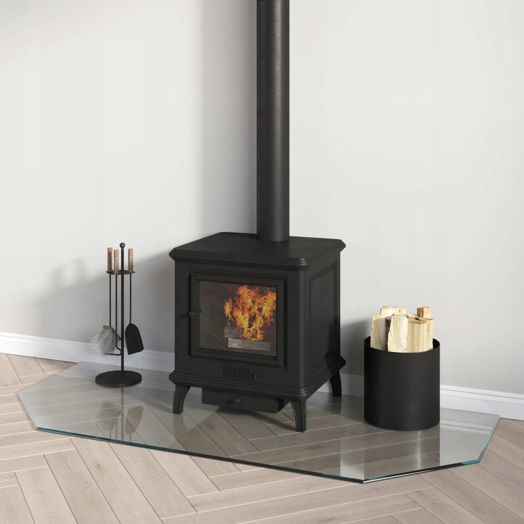 Ten szklany panel kominkowy może być używany jako mata podłogowa w celu ochrony powierzchni podłogi podczas palenia w kominku.