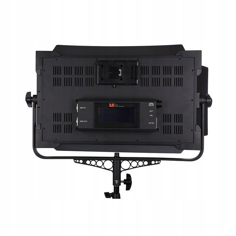 Studyjny panel LED Lishuai P-1380ASVL o średniej mocy 2458 lux / 1 metr, z regulacją temperatury barwowej w zakresie 3200K-5600K oraz płynną regulacją natężenia mocy od 10% do 100%.