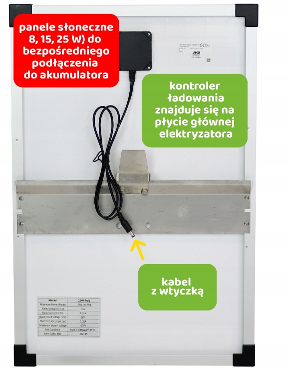 Panel słoneczny 25W z mocowaniem, do elektryzatorów z gniazdem solarnym, Ke