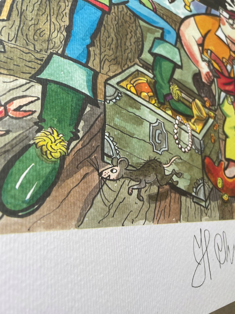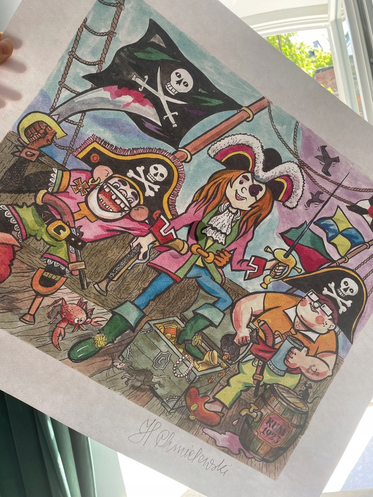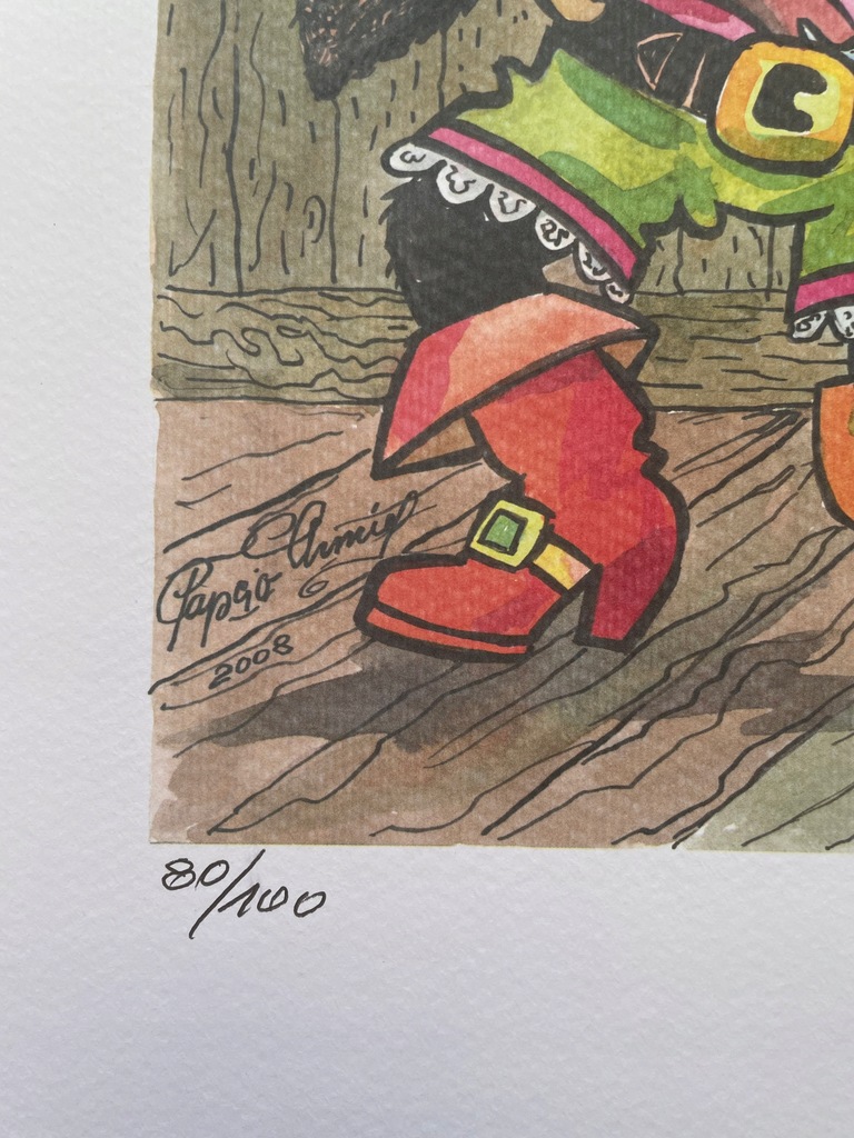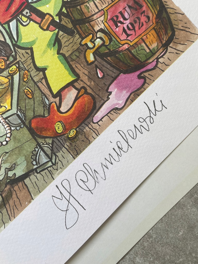 Przedmiotem aukcji jest inkografia pt. „Tytus, Romek i Atomek - Piraci” wykonana przez artystę Henryka Chmielewskiego p. „Papcio Chmiel” z jego własnoręcznym podpisem oraz hologramem potwierdzającym autentyczność (na odwrocie).