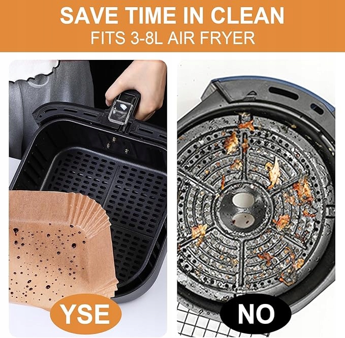 - Łatwe czyszczenie: nieprzywierająca kwadratowa wkładka pergaminowa z silikonową powłoką klasy spożywczej ochroni Twoją frytkownicę powietrzną przed resztkami jedzenia, sprawi, że sprzątanie będzie dziecinnie proste, aby wydłużyć żywotność frytkownicy.