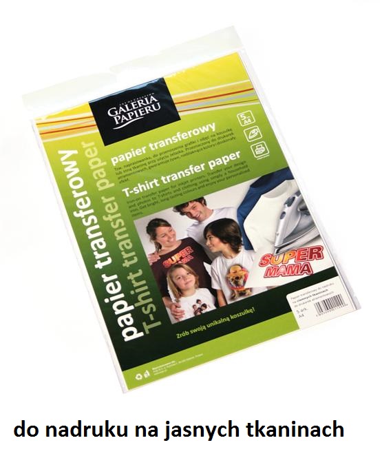 PAPIER TERMOTRANSFEROWY NAPRASOWANKI A4 5ark INK DO BIAŁYCH JASNYCH TEKSTYLIÓW