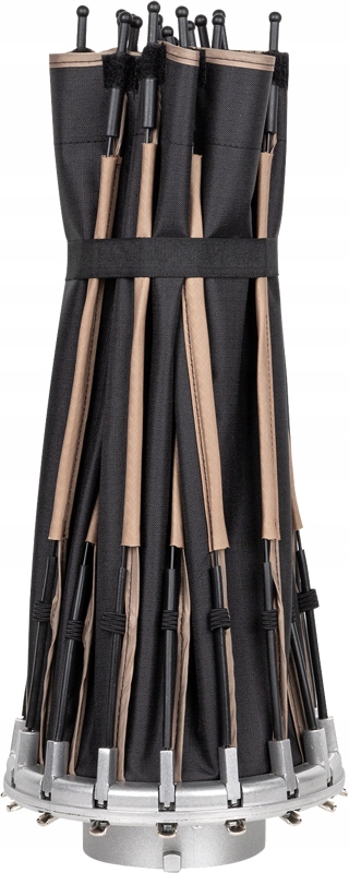 - Żebra parasola są zamontowane zewnętrznie, aby zapewnić gładką i równomierną powłokę po wewnętrznej stronie, bez wpływu na funkcję wewnętrznego światła odbitego, co więcej, kości parasola nie odklejają się łatwo od rzepu.