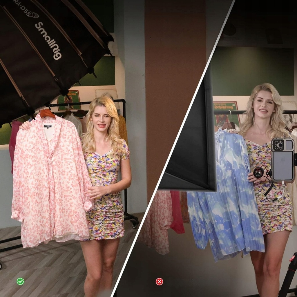 - Zastosowanie: Softbox SmallRig RA-D55 służy do zmiękczania i równomiernego rozpraszania światła emitowanego przez lampy studyjne, co pozwala uzyskać naturalniejsze i bardziej estetyczne oświetlenie podczas fotografii, filmowania czy transmisji na żywo. Dzięki niemu możliwe jest kontrolowanie kierunku i intensywności światła, co poprawia jakość obrazu oraz redukuje ostre cienie. Jest idealny do zastosowań w studiu, na planie filmowym, podczas nagrań vlogów, eventów czy sesji ślubnych. W zestawie znajduje się tylko softbox, lampę należy kupić osobno.