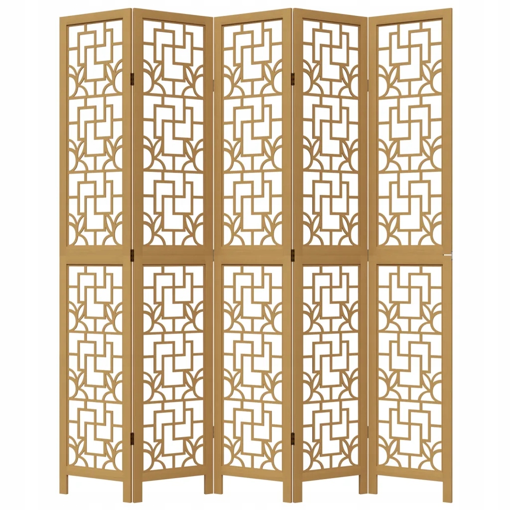 Parawan pokojowy, 5-panelowy, brązowy, lite drewno paulowni