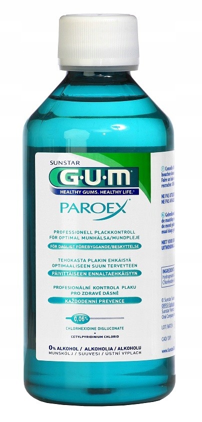 Wyrób medyczny Paroex płyn do płukania jamy ustnej przeznaczony jest do stosowania bez rozcieńczania w celu łagodzenia wrażliwych dziąseł oraz zmniejszenia akumulacji płytki nazębnej. Może być stosowany przed oraz po wykonanych zabiegach chirurgicznych, ekstrakcjach zębów lub osadzaniu implantu