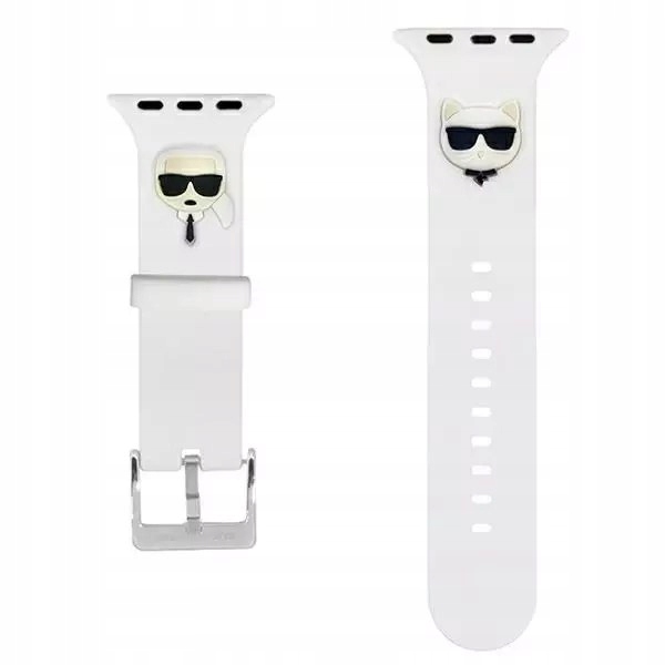 Pasek do smartwatcha Karl Lagerfeld KLAWLSLCKW do Apple Watch 42/44/45mm biały/white strap Silicone Karl & Choupette Heads Karl Lagerfeld